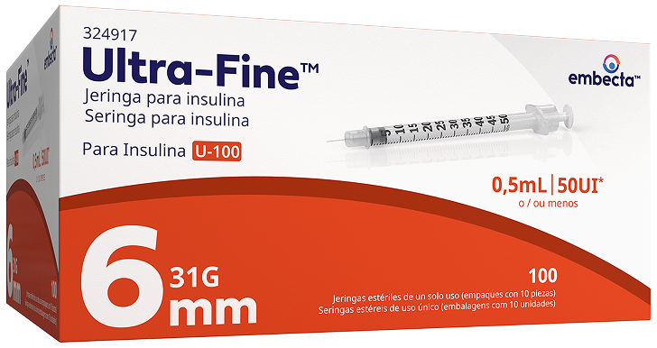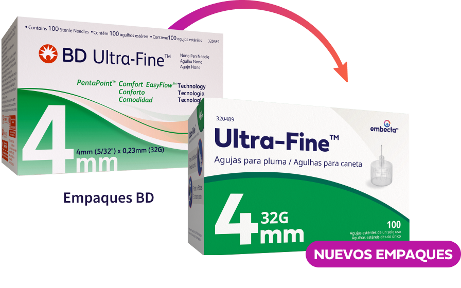Gama de longitudes de aguja y diferentes capacidades diseñada para satisfacer las necesidades de las personas con diabetes.