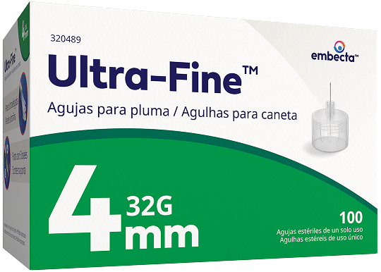 Gama completa de agujas para lapicero de confianza para la administración correcta de insulina.